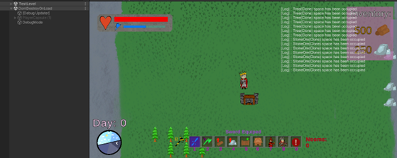 Throughout this process, I always made sure to test run the game for bugs and performance issues. When my teammate had made a system for minions to be assigned to wood collectors, I found through testing that having multiple collectors in the scene and also at the start of day when they started collecting wood, it would cause serious lag spikes. I also discovered how the pathfinding for enemies caused serious lag because they would all spawn at the same time being very computationally powerful having to all decide a path at the same time, and to go around this I simply made a spawning system in which a delay is made between each enemy spawn, and they would only spawn when my time-of-day system would hit nighttime.
